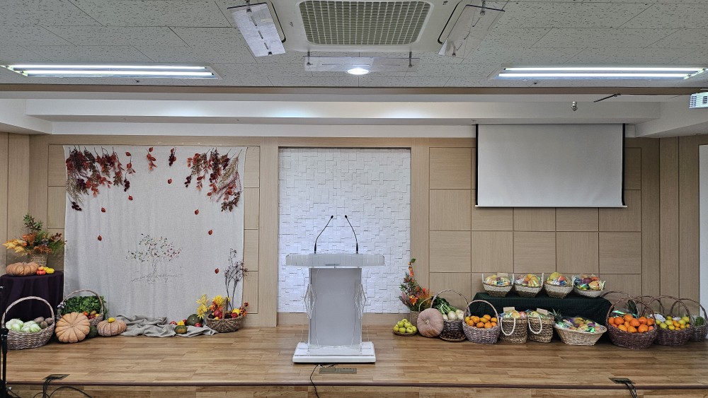추수감사절을 맞이해 하나님이 베풀어주신 은혜에 대한 감사로 강단을 장식하였습니다!