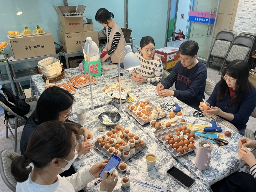 부활절을 맞아 성도님들이 달걀 꾸미기 활동을 했습니다.