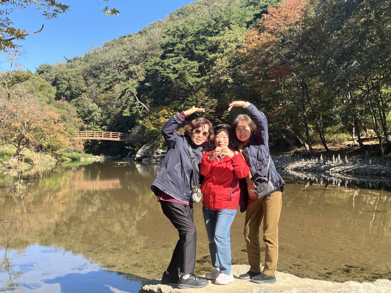 맑은 공기와 단풍이 어우러진 길을 함께 걸으며 서로의 안부를 나누고, 오랜만에 웃음이 끊이지 않는 즐거운 시간을 보냈습니다.