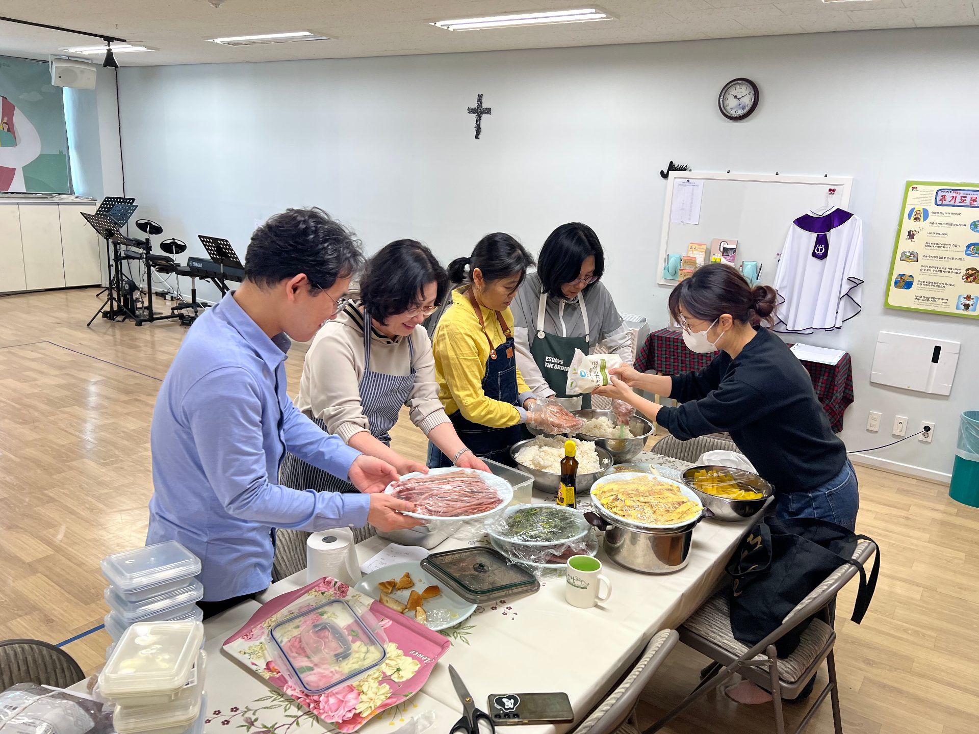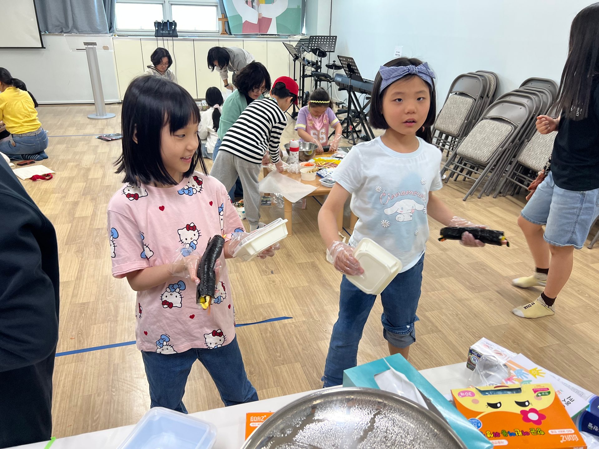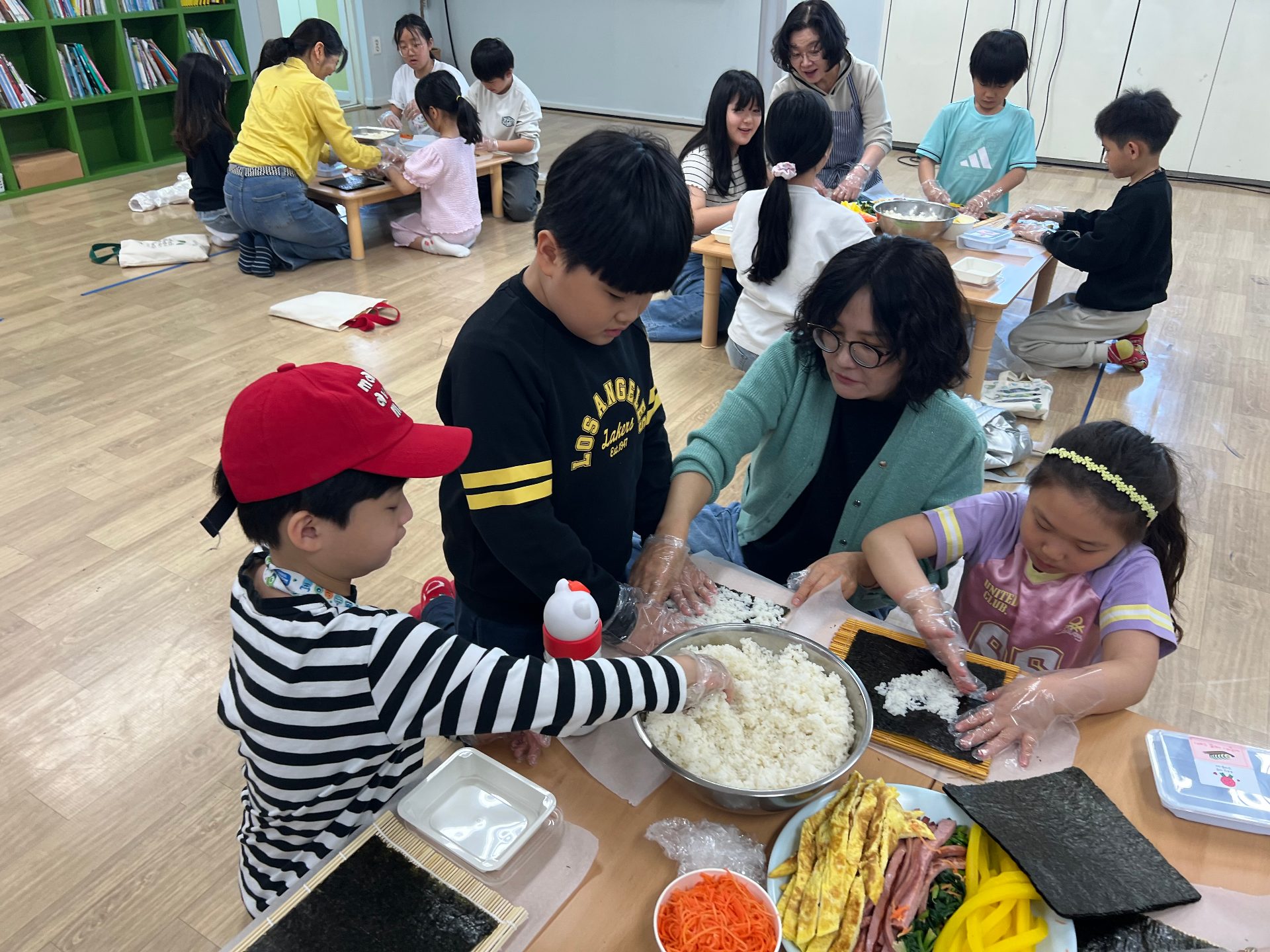 김밥 두 줄을 정성껏 준비하고, 맛있게 나누어 먹었습니다. ^^